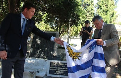 Ambos presidentes descubrieron una placa que quedó ubicada sobre la lápida de Héctor Gómez, en el Cementerio Central de la capital uruguaya, en reconocimiento al primer mandatario de la Conmebol en lo que fue el inicio de una jornada de celebraciones por los 100 años de la organización.