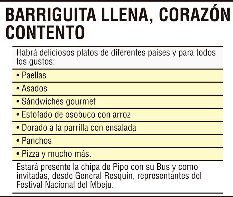 El lema Barriguita llena, corazón contento refleja el espíritu de la jornada: disfrutar de una amplia variedad culinaria mientras se apoya una noble causa.