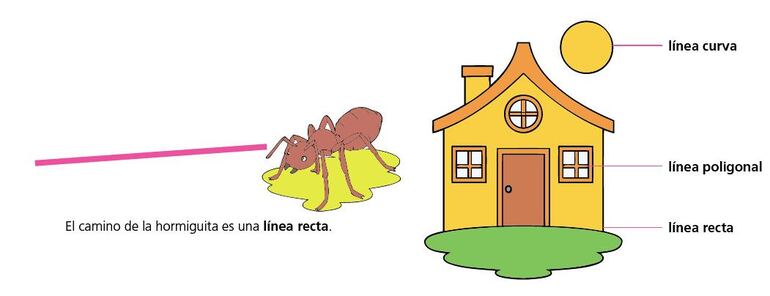 Señala en el dibujo las líneas rectas, curvas y poligonales que encuentres.