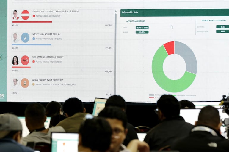 Hasta anoche, Nasralla obtenía una ventaja de hasta 20.000 votos contra Asfura, en el reñido escrutinio.