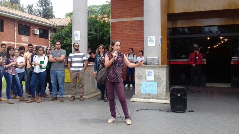 Una de las estudiantes que se encuentran manifestándose frente al Rectorado de la Universidad Nacional de Asunción informó a todos los presentes que, en la sesión de esta mañana, el Consejo Superior Universitario decidió no intervenir aún la Facultad de Ciencias Veterinarias. Esta postura se dio pese a que ya hay dos casos comprobados de alumnas infectadas por brucelosis en dicha casa de estudios.