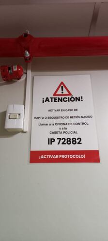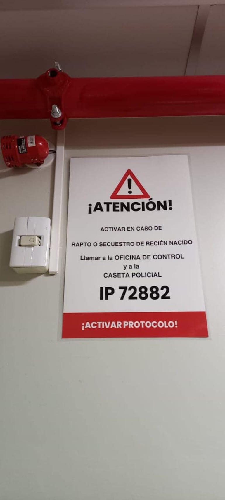 En el caso de que, pese a toda la prevención, ocurra la desaparición de un recién nacido, se dispone de una alarma que es activada tanto en la sala de puerperio como en la salida y en la caseta de la Policía Nacional.