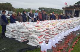 SAN JUAN BAUTISTA. Unas 29 familias del Comité Itaju, compañía San Cristóbal, distrito de San Juan Bautista, recibieron desde el Ministerio de Agricultura y Ganadería (MAG) el segundo desembolso del proyecto de fortalecimiento a la avicultura familiar. En esta ocasión fueron entregados pollitos, kits de veterinaria, alimentos, entre otros implementos agrícolas para los socios del comité.